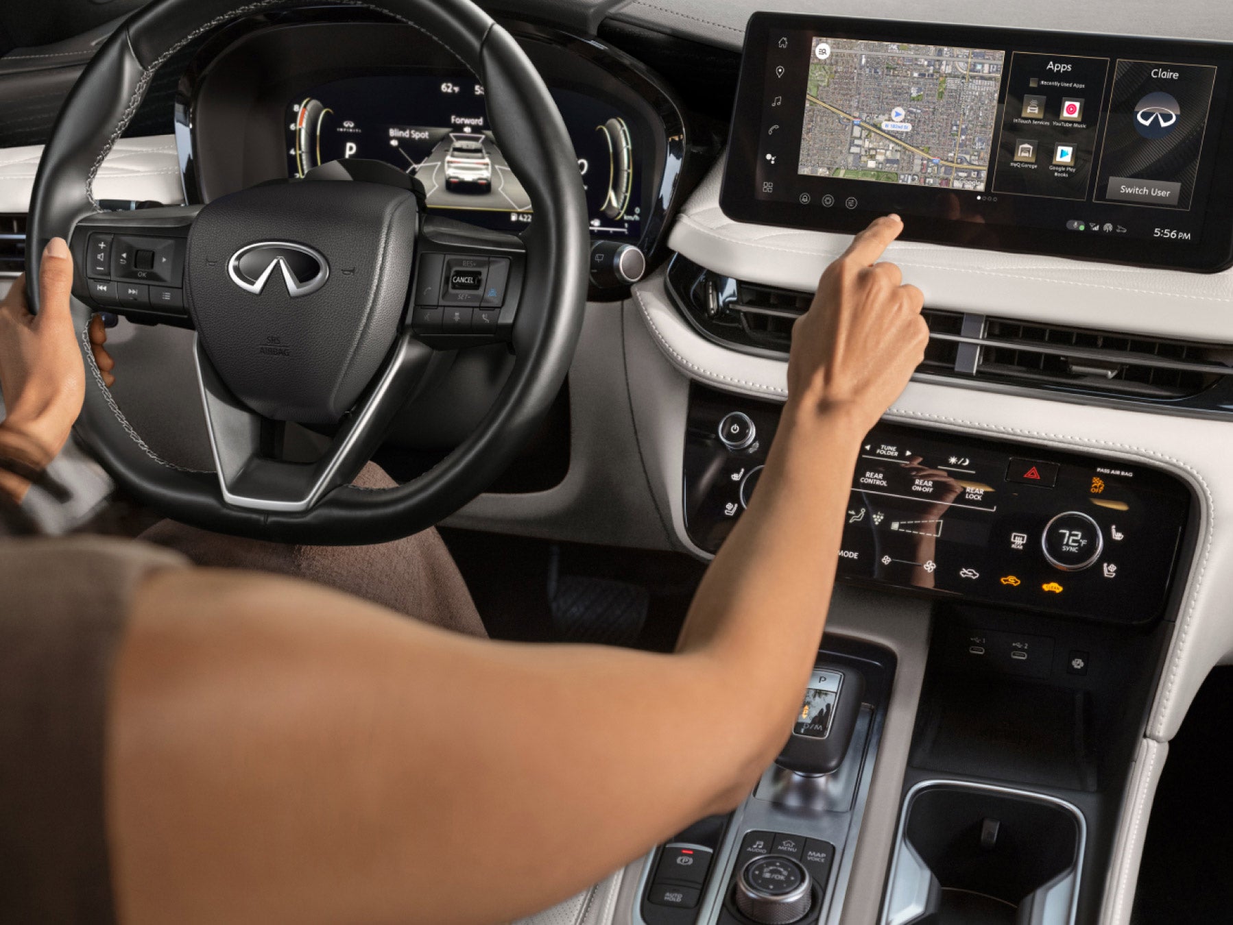 Featuring a standard heated steering wheel, available climate-controlled front seating, and available massaging front-row, comfort clearly leads the way in QX60.
